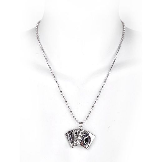 Colgante con cadena en color plateado, es una baraja de cartas de poker con los símbolos en color negro.Colgante de tamaño pequeño.