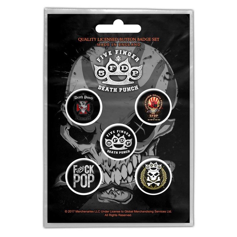 Pins set Five Finger Death Punch: Logos (Retail Pack). Fabricado en plástico y metal. Pins set